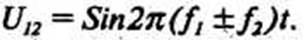 где U1 и U2 — амплитудные значения синусоидальных сигналов с частотами f1 и f 2, а 12 • — амплитуда разностного ил и суммарною сигналов