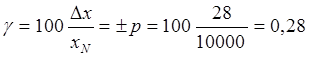 При отсутствии систематических погрешностей и принятии допущения о том, что случайная погрешность распределена нормально, можно установить зависимость между приведённой допускаемой погрешностью γ и с.к.о. этой погрешности.