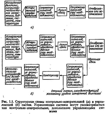 В случае управляющей системы (рис. 1.1, б) применяются некоторые виды компарирующих приборов, предназначенных для сравнения обрабатываемых данных с некоторыми опорными значениями и получения разностного сигнала.