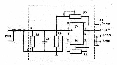 Микросхема D1 служит для предварительного усиления сигнала чувствительного элемента В1 и согласования его выходного сопротивления и вторичного прибора. Величина входного сопротивления согласующего усилителя задается значением сопротивления R1.