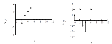 Знайти згортку послідовностей x(n) і y(n) двома способами: прямим обчисленням і з використанням z-перетворення. Результат обчислень представити графічно.