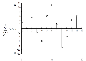 F(12)=x(0)×y(12)+x(1)×y(11)+x(2)×y(10)+x(3)×y(9)+x(4)×y(8)+x(5)×y(7) +x(6)× y(6)+x(7)×y(5)+x(8)×y(4)+x(9)×y(3)+ x(10)×y(2)+x(11)×y(1)+x(12)×y(0) = 0+0+0+0+0+0+0+0+0+0+0+0+0 = 0;