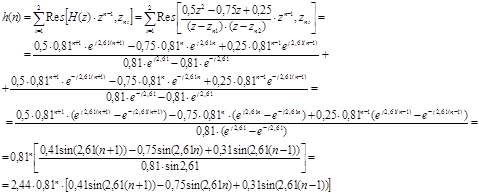 Знайти системну функцію фільтра, імпульсну характеристику, частотну характеристику (аналітичні вирази). Зобразити розташування нулів і полюсів системної функції на z-площині. Побудувати графік АЧХ фільтра, зобразити структурну схему фільтра, з'ясувати, чи стійкий даний фільтр. Побудувати початкову частину імпульсної характеристики фільтра (не менш 30 відліків).