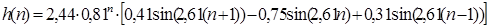 Визначимо початкову частину імпульсної характеристики фільтра (30 відліків) (таблиця 2.1. і рис. 2.2):