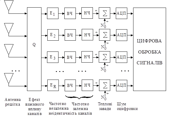Як наслідок, необхідно орієнтуватись на реалізацію цифрової обробки сигналів на основі багатовимірних процедур з врахуванням взаємного впливу антенних елементів. При цьому необхідно забезпечити інваріантність цифрової обробки до геометрії цифрової антенної решітки. В зв’язку з тим, що при проведені багатокоординатних вимірів можуть значно зрости об’єми обчислювальних витрат, необхідно вирішувати зазначену задачу з єдиних позицій врахування ефекту взаємного впливу антенних елементів цифрової антенної решітки з метою збереження наступності з однокоординатними процедурами. При цьому необхідно надавати перевагу матричним моделям відгуку цифрової антенної решітки.
