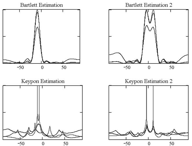 Рис. 3.11. Спектральна оцінка за методами Бартлета та MUSIC, яка отримана за допомогою макету ЦАР.