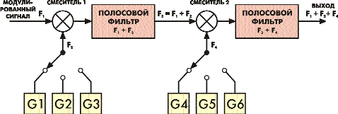 Використовуючи дільників частоти, що мають структуру змішувач/фільтр/дільник, можна зменшити кількість необхідних опорних генераторів, хоча і в цьому випадку можливості перебудови залишаться більш ніж скромними.