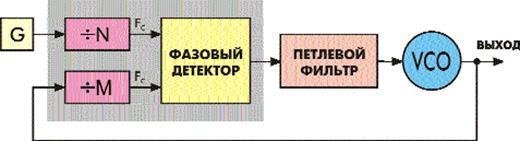 де FOUT — вихідна частота; FC — частота порівняння; N — коефіцієнт розподілу опорної частоти; M — коефіцієнт розподілу вихідної частоти.