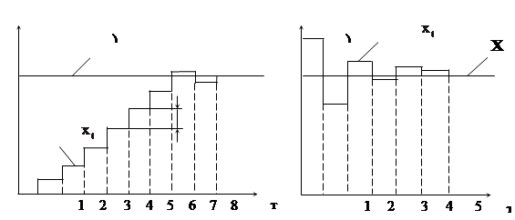 Характерною ознакою методів і ЦВП послідовної лічби є те, що зрівноважування вимірюваної величини X відбувається послідовним накопиченням (підсумовуванням) одиничних мір зразкової величини x0(t), які є сходинками квантування (DXк = const) (рис. 3, а). Результат перетворення відповідає моменту рівності вимірюваної X та зразкової x0(t) величин, він визначається кількістю одиничних мір DXк, які відповідають цьому моменту, і відображається послідовним (протягом часу) одиничним (унітарним) кодом. До методів послідовної лічби належать час-імпульсний і частотно-імпульсний методи, а також кодоімпульсний метод з рівномірно-східчастим зрівноважуванням і деякі варіанти методу просторового перетворення.