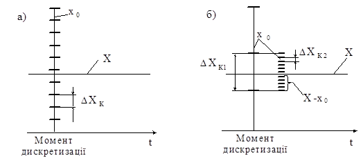 , які водночас порівнюються з вимірюваною величиною X (рис. 4, а). Сформовані рівні величини