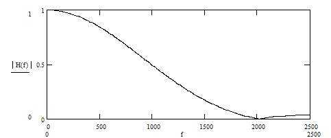 Гребенчатость фильтра связана со стробоскопическим эффектом при оцифровке сигнала, когда бесконечное множество аналоговых колебаний различных частот имеют одинаковую дискретную реализацию в отсчетах и, следовательно, обрабатываются фильтром одинаково. Но только одно из таких колебаний имеет частоту, меньшую частоты дискретизации, а значит, остальные колебания не отвечают требованию теоремы Котельникова, согласно которой верхняя частота сигнала должна быть как минимум в два раза меньше частоты дискретизации, иначе может произойти потеря информации, закодированной в дискретном сигнале. По заданию, FД = 5 кГц , следовательно, верхняя частота сигнала, а значит, и фильтра составляет