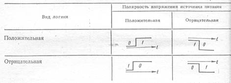 При положительной логике высокому уровню напряжения ставится в соответствие логическая 1, а низкому- логический 0, При отрицательной логике наоборот.