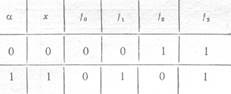 Для анализа и синтеза ЦИМС широко применяется аппарат алгебры логики, который является одним из разделов математической логики. Любое высказывание можно обозначить символом х и считать, что х=1, если высказывание истинно, и х=0, если высказывание ложно. Логическая переменная- такая величина х, которая может принимать значение 0 или1. Переключательная(логическая) функция у=f(х1,х2,…хn) так же как и её аргументы может принимать значения 0 или 1.При технической реализации переменные х1,х2… отождествляются с входными сигналами логических элементов, а значения функции у=f(х1,х2,…хn) – с выходными сигналами. Любую логическую функцию можно задать с помощью таблицы истинности. Задать логическую функцию- это означает указать значения функции (0 или 1) при всех возможных комбинациях значений аргументов. Логические функции одной переменной приведены в таблице2.