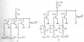 Рисунок 7. а- сочетание диодного логического элемента И с транзисторным инвертором. На этом же рисунке различные модификации