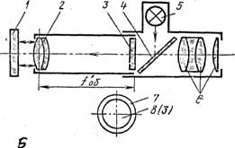 плоскопараллельная пластинка; 5-источник света; 6-окуляр; 7-диафрагма; 8 (3)-сетка нитей