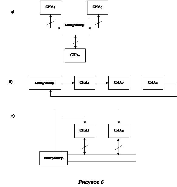 На рисунке 6, а изображена схема интерфейса с радиальной структурой; на рисунке 6, б – с цепочной, а на рисунке 6, в – со смешанной.