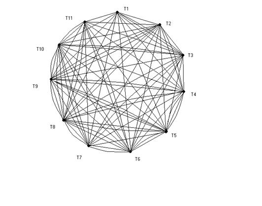 из множества нераспределенных вершин Ir . В начале процесса все вершины считаются нераспределенными, т.е. Ir=E.Критерием выбора вершины на роль базовой является ее степень