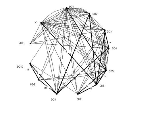 -число связей между вершинами