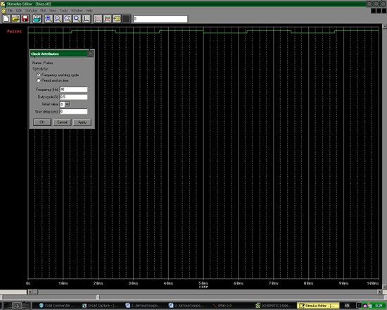 После создания профиля производиться задание вида входных сигналов из контекстного меню источников сигнала. При моделировании возможно создание сигналов «0», «1», прямоугольных, синусоидальных и других сигналов определённой частоты и длительности. Задание сигналов производиться в окне StimulusEditor.