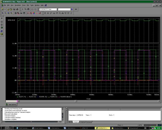 Рис. 5 – Окно PSpiceA/D с отображенными диаграммами работы схемы.