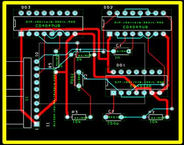 Автотрассировка проводников производится по команде Auto/ Autoroute / Board. После окончания разводки плата увеличивается на весь экран по команде View / Zoom All, и визуально оцениваются результаты трассировки. Если видно, что некоторые элементы расставлены неоптимальным образом, (например, их желательно переместить, повернуть и т.п.), можно отменить результаты трассировки (команда Auto / Unroute / Board) и переместить элементы вручную.