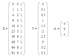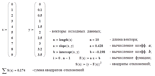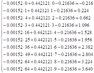 | yi | 0 | 0,1 | 1,5 | 1 | 1,5 | 2 | 2,5 | 3 | 3,2 | 3,5 |