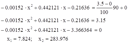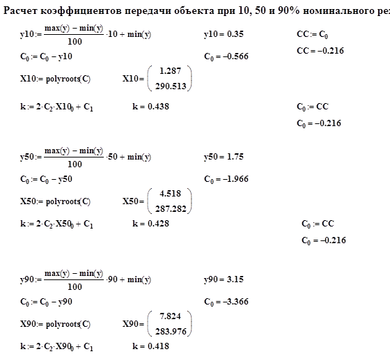 - расчет коэффициента передачи объекта при 10, 50, 90 % номинального режима;