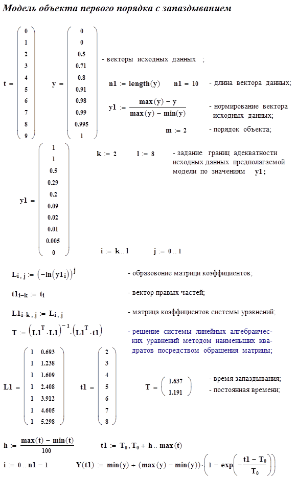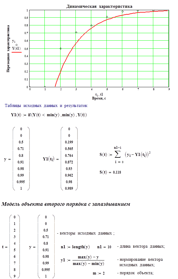 - построение динамической модели объекта в виде передаточной функции 1-го порядка с запаздыванием и без запаздывания;