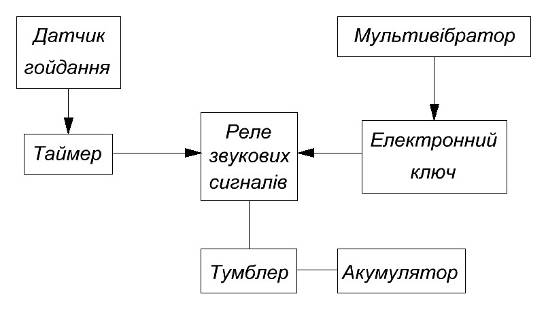 – електронного ключа, який періодично включає реле звукових сигналів;