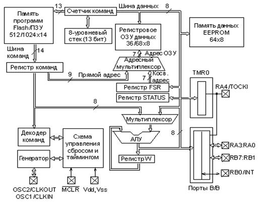 Всі мікроконтролери підгрупи PIC16F8x використовують гарвардську архітектуру з RISC-процесором, які володіють наступними основними властивостями: