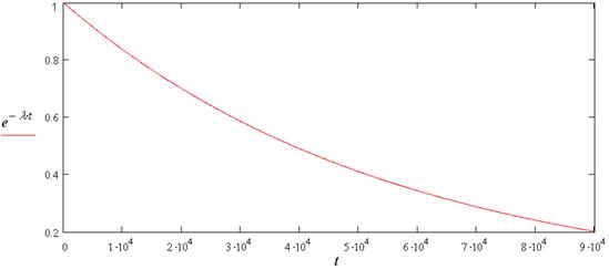 | Рс (t) | 1 | 0,837 | 0,706 | 0,586 | 0,491 | 0,410 | 0,343 | 0,287 | 0,241 | 0,201 |