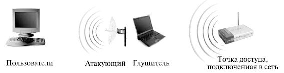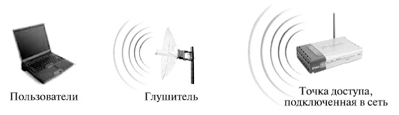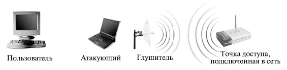 Рисунок 3.13. Атака "отказ в обслуживании" в беспроводных коммуникациях
