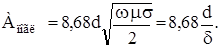 Глубина проникновения d определяется как величина, обратная коэффициенту затухания и зависит от частоты: чем больше частота, тем меньше глубина проникновения. В СВЧ диапазоне глубина проникновения d в металлах имеет малую величину и тем меньше, чем больше проводимость металла и его магнитная проницаемость.
