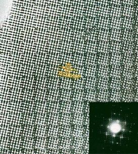 В ПЭМ объект исследования должен пропускать пучок электронов. Первостепенная задача исследователя - обеспечение двух условий: малой толщины образца и избирательного взаимодействия электронов с разными деталями образца. Микроскоп снабжается камерой, в объёме которой создаётся необходимый вакуум (10-5 - 10-6 Па). Ускоряющее напряжение, прикладываемое между катодом и анодом, находится в пределах от 20 до 200 кВ, что обеспечивает режим работы «на просвет». В РЭМ это напряжение значительно меньше (до 20 кВ). Весьма эффективно применение ПЭМ для анализа микроструктуры материалов, установление в ней нарушений, контроля правильности заполнения узлов кристаллической решётки, наличия пустот, дислокаций и т.д. (рис. 4).