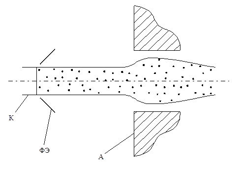 Электронная система такой пушки состоит: из катода, прикатодного фокусирующего электрода и анода. Фокусирующий электрод (ФЭ) находится под потенциалом катода, а анод имеет положительный потенциал (несколько десятков кВ) относительно катода и ФЭ. Для формирования параллельного пучка катод должен иметь плоскую форму, а фокусирующий электрод – форму усеченного конуса. Анод может быть плоским диском с отверстием либо иметь выпуклую, в сторону катода, форму в соответствии с одной из форм эквипотенциальных поверхностей. Эквипотенциальные поверхности имеют сложную форму, и изготовление электродов в соответствии с точной конфигурацией электрических полей затруднительно. Для формирования пучка решающее значение имеет распределение потенциала у его границы. Изменение формы электродов вдали от электронного потока мало сказывается на распределении потенциала вдоль его границы. Практически достаточно выдержать необходимое распределение потенциала на расстоянии одного полутора диаметров пучка от его границы. При конструировании пушки можно выбирать упрощенную форму электродов, обеспечивающую необходимое распределение потенциала вблизи границы пучка. Вдали от границы форму электродов выбирают исходя из конструктивных соображений: простоты изготовления, удобства крепления и т.д. Из аналитических расчетов следует, что нулевая эквипотенциальная поверхность должна подходить к границе пучка у поверхности катода под углом