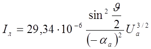 - половинный угол сходимости пучка в пространстве анод – катод;
