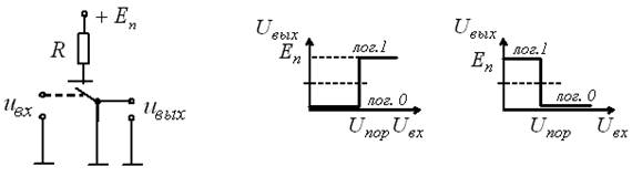 Ключ – элемент, который под воздействием управляющего сигнала производит различные коммутации (источников питания, активных элементов и т.д.). Электронный ключ является основой для построения более сложных цифровых устройств. При включении активного элемента с общим эмиттером (истоком) ключ выполняет логическую операцию НЕ, т.е. инвертирует входной сигнал.