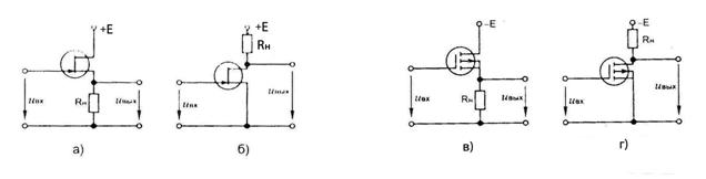 Схемы ключей на полевых транзисторах с управляющим p-n-переходом и с индуцированным каналом с общим истоком и общим стоком показаны на рисунке: