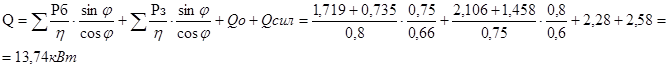 - кпд ВУ, Ро Qo –активная и реактивная мощности освещения, Рсил Qсил активная и реактивная мощности силового оборудования.