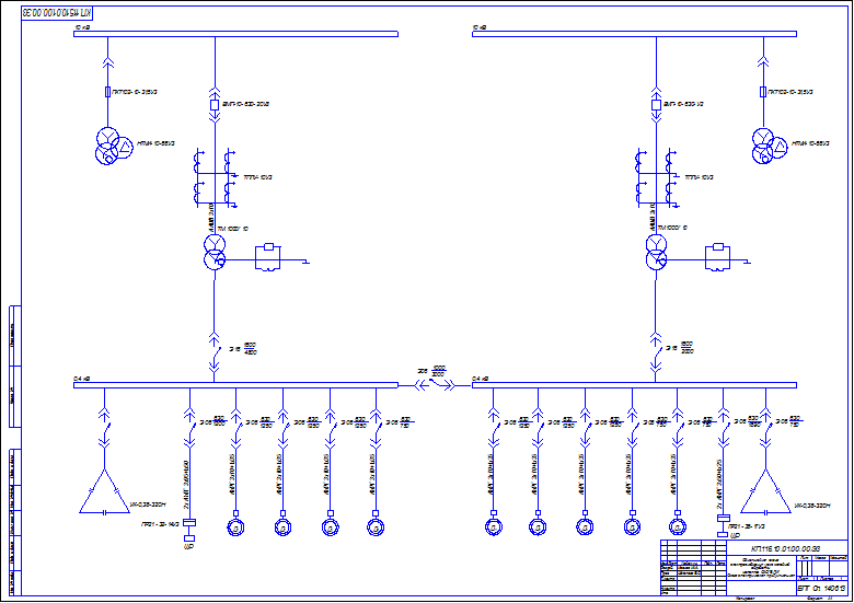 8 Вычерчивание однолинейной схемы электроснабжения для курсового проекта «Электроснабжение отрасли»