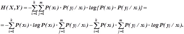 где P(xi ,yj ) - вероятность совместного появления сообщений xi и yj . Поскольку совместная вероятность P(xi ,yj ) по формуле Байеса определяется как
