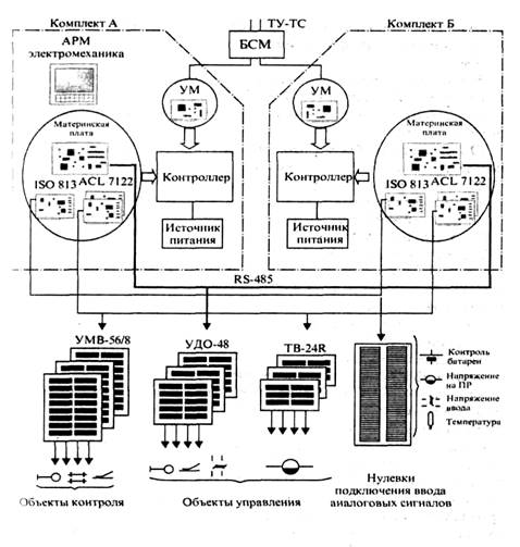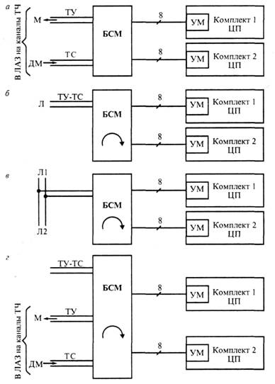 Модемы обоих комплектов на ПУ подключаются к устройству сопряжения с линией связи БСМ, которое обеспечивает