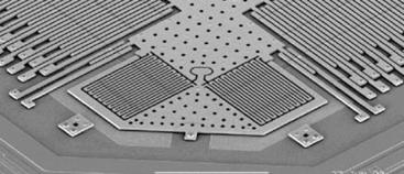. Розміри елементів конденсатора такі: довжина активної частини пальців складає 125 мкм, висота 2 мкм, зазор між рухомими та не рухомими пальцями близько 1,3 мкм. Електрична частина датчика ADXL202 ADXL210