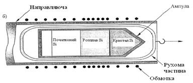 В методі зонної плавки виконується повільне опускання зони розплаву (рис.8).