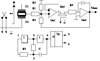 - двохтактний високочастотний генератор, вихідна напруга якого подається в протифазі на нерухомі пальці диференційних конденсаторів(