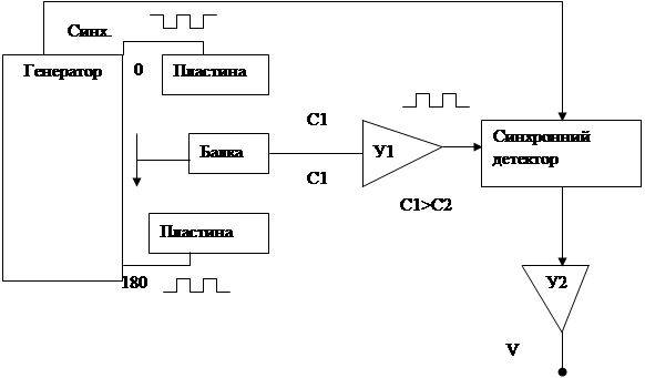 ; в демодуляторах вихідний сигнал конденсаторів, величина та фаза якого визначаються з вимірювальним прискоренням, демодулюється в порівнянні з напругою високочастотного генератора;