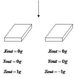 Акселерометр знаходиться в статичному (нерухомому) стані, прискорення руху відсутнє, але його показання виникає завдяки силі тяжіння і залежить від місця розташування відносно Землі. Слід відмітити те, що відповідно до рис.5 проводиться не тільки вимірювання, а і калібровка акселерометра. Прискорення земного тяжіння залежить від географічної широти, із урахуванням впливу обертання Землі, знаходиться в межах від 9,78