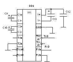 З документації на мікросхему MAX232 визначаємо номінали конденсаторів С9