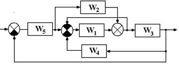 1. Преобразуем структурную схему, перенеся узел между третьим сумматором и звеном W3 назад через динамическое звено с передаточной функцией W3. При этом добавится звено с передаточной функцией 1/W3. Поэтому структурная схема системы может быть представлена в виде, изображенном на Рис.3