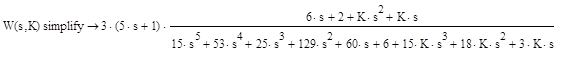 Произведем выполнение соответствующих упрощений полученного алгебраического выражения (приведение к общему знаменателю, перемножение многочленов и приведение подобных). анализ выполним с использованием возможностей блока аналитических (символьных) преобразований пакета компьютерной математики Mathcad.